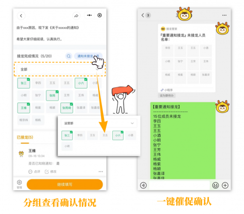 还能直接提醒未接龙人员,做到通知零遗漏。