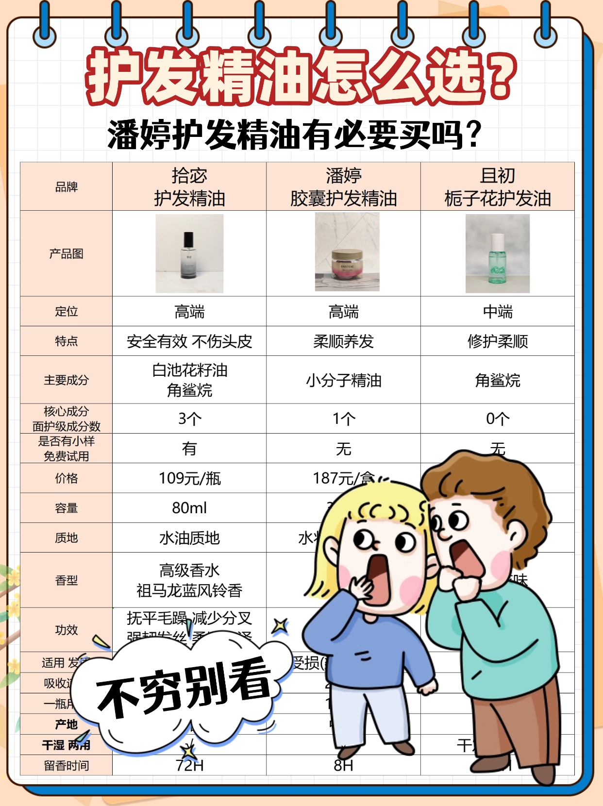学生党最关心护发精油有必要买吗?还有多久用一次合适?其实学生党头发干枯毛躁的话,完全可以入!选平价款就够,重点看清爽度和性价比,不用追求贵价大牌。使用频率看发质,头发偏干的话,隔天用一次就行,头发偏油的话,3-4 天用一次,每次 1-2 泵,只涂发尾,避免碰发根,不然容易油腻。另外学生党日常打理不用太复杂,洗完头半干时用,能减少梳头拉扯,让头发更顺滑,还不影响学习生活。下面是我总结的护发精油选购注意事项,干货满满,可以先赞收藏!