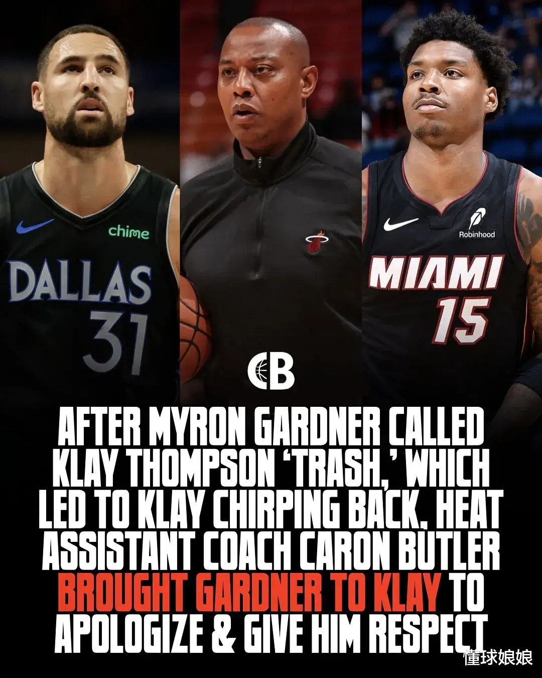 赛后热火的助理教练卡隆-巴特勒更是带着加德纳去给克莱道歉。
