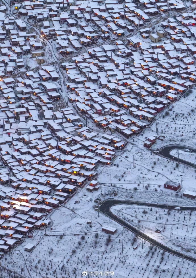 d.喇荣宾馆前的公路:超火的拍照打卡地,沿着山道慢慢走下来,公路和红房子完美结合,照片氛围感直接拉满!