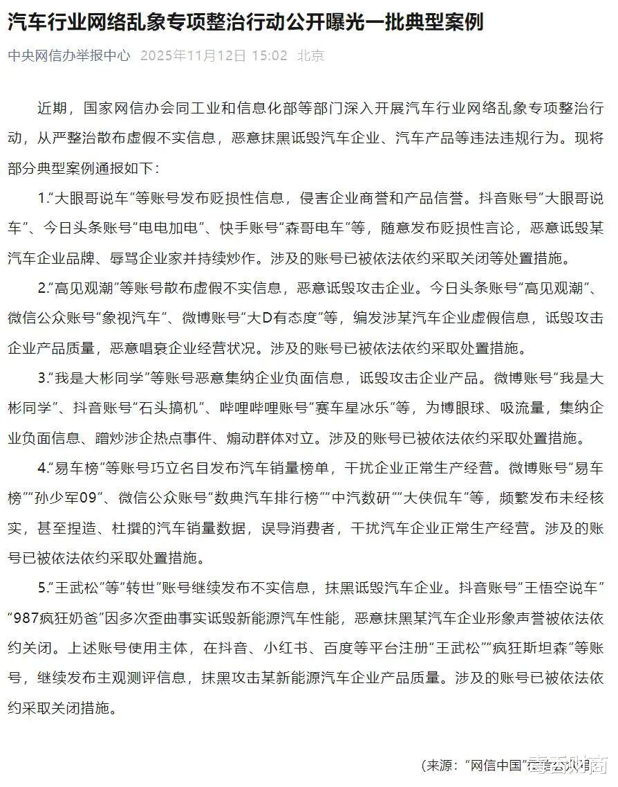 最后“王悟空说车”也因此而付出了沉重的代价,除了被法院判决赔偿比亚迪31.38万之外,此前,中央网信办在《汽车行业网络乱象专项整治行动公开曝光一批典型案例》中就明确指出,抖音账号“王悟空说车”“987疯狂奶爸”因多次歪曲事实诋毁新能源汽车性能、恶意抹黑汽车企业形象声誉,被依法依约关闭。