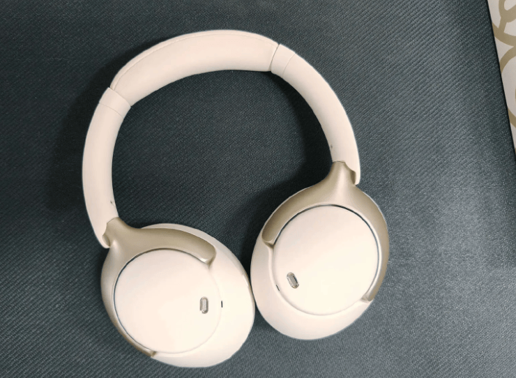 这款耳机的重量大约在213克左右,耳罩采用了圆润的蛋白皮材质,外层触感细腻,内部填充厚实,整体佩戴起来柔软又贴合。头梁部分使用了可伸缩金属结构,配合隐藏式转轴设计,能把压力分散得比较均匀,所以即便戴久了也不会觉得夹头或酸痛。不过有两个小问题:后仰或大幅度活动时,耳机会稍微往下滑;配套的APP连接稳定性一般,偶尔会出现断连,而且可自定义的选项也不多。