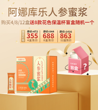 爆款盲盒随心配: 购买她最爱的人参蜜浆,就能随机解锁一款高颜值保温杯盲盒,8款绝美花色,喝水都变成一种期待!