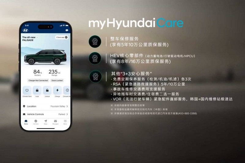 除了诚意十足的售价,现代汽车还同步推出了专属预售礼遇,包括先享预定权益:前60位预订用户将获赠THULE车顶箱套装,其他订购车主则可获得原装进口脚踏板。此外,置换客户还可享受至高10000元的补贴。更贴心的是,针对进口车配件费用高、维修周期长、维修网点少等用户痛点,现代汽车在原有三大售后服务基础上,特别推出“3+3安心服务”,致力于为用户提供更高品质的用车体验。