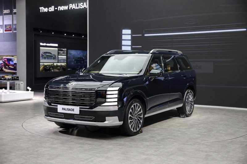 发布会刚落下帷幕,现场观众便迫不及待地涌入现代汽车的展台,近距离品鉴现代汽车的全新产品。在展台最中央的是本次车展的明星产品新一代帕里斯帝。其进行了全新的设计,摆脱了“FAMILY LOOK”的陈词滥调,为家庭用户提供更具鲜明个性的外观设计,新一代帕里斯帝以“Bold Premium”新奢设计语言重塑旗舰气场,无论是整体设计还是细节处理均彰显着进口品质。前脸的垂直DRL日行灯采用极具冲击力的立体设计,与宽体进气格栅构成强烈的视觉标识,诠释着作为旗舰SUV的强烈存在感。变短的前悬与变长的轴距和后悬、有立体感的轮拱以及21英寸轮毂强调了新一代帕里斯帝独有的设计感,展现出沉稳大气的车身姿态的同时,也传递着守护家庭的坚实感与安全感。