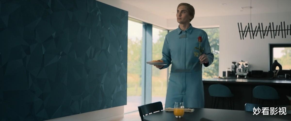 影片的制作水准尚可。美术设计干净现代,机器人外壳泛着冷光,家中的空间开阔却空洞,像一座精心布置的牢笼。