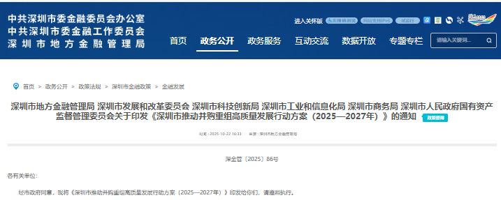 【环球网财经综合报道】深圳市地方金融管理局等多部门于10月22日联合印发《深圳市推动并购重组高质量发展行动方案(2025—2027年)》,以十项重点任务为抓手,正式吹响了推动本地上市公司通过并购重组实现高质量发展的“集结号”。《方案》设定了雄心勃勃的目标:力争到2027年底,深圳境内外上市公司总市值突破20万亿元,并培育出20家千亿级市值企业。
