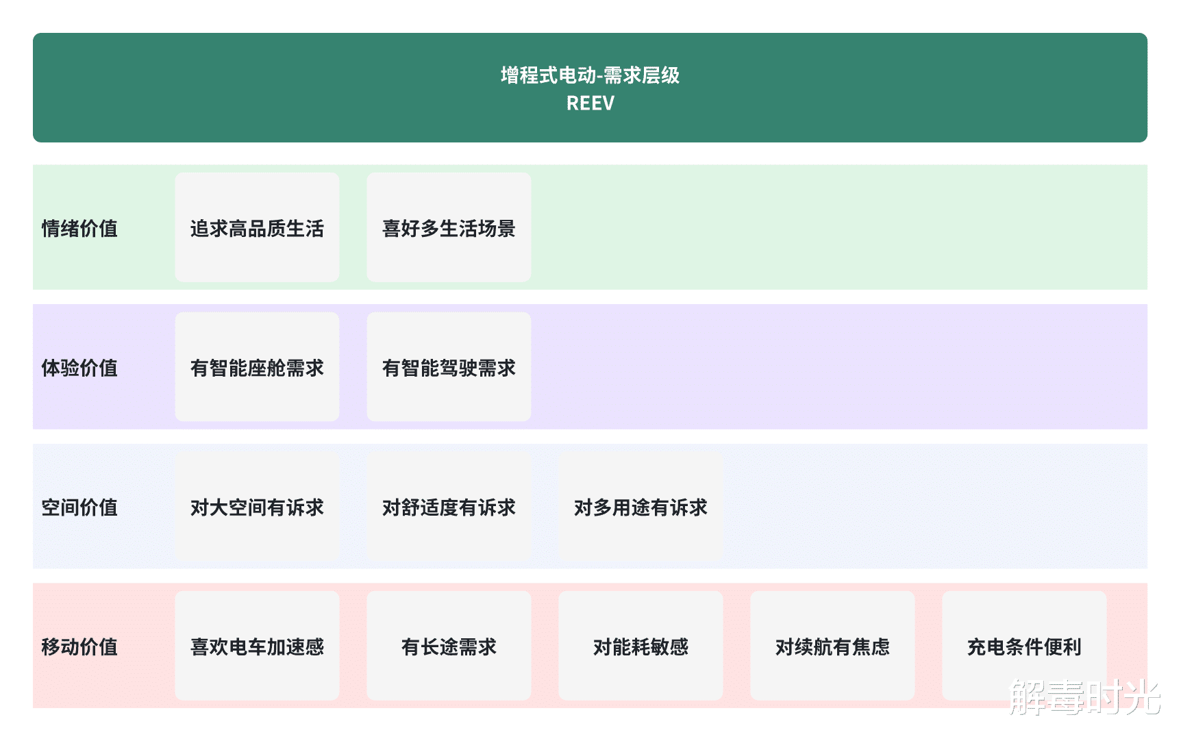 或者说,回顾此前提到的车辆需求四个层级:移动价值、空间价值、体验价值和情绪价值。长纯电续航增程看似很美好,但本质上并没有给移动价值带来跃升,如果不能在空间、体验和情绪价值上做文章,那么投入更多的电池容量的成本,就很难收回了。