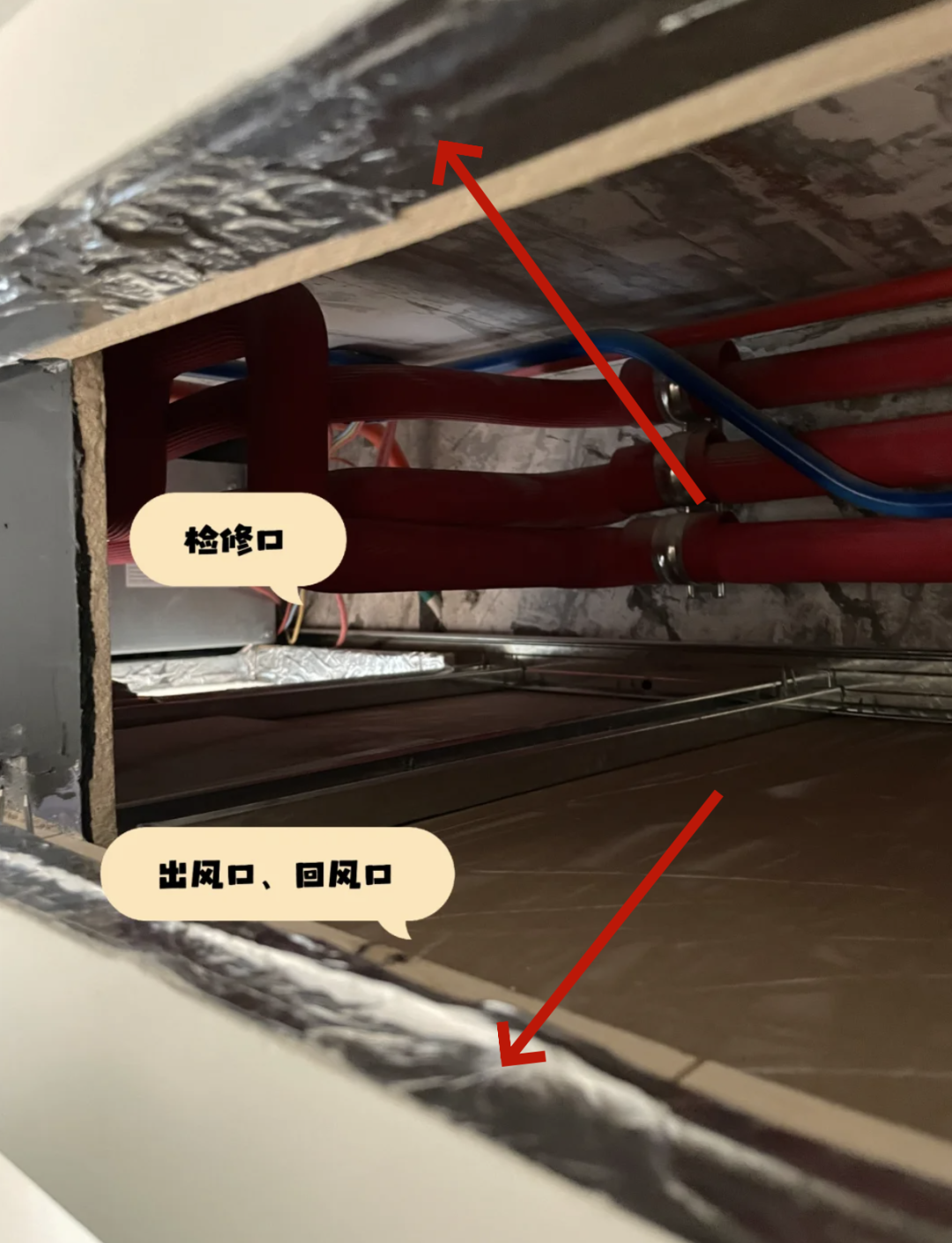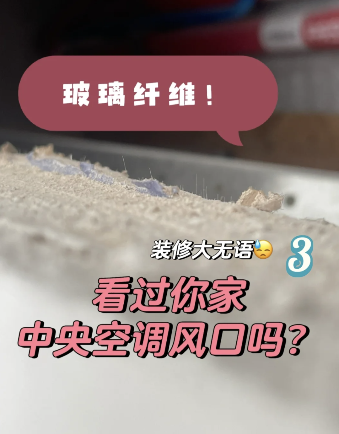 尤其是中央空调出口处的石膏板切面部分,是玻璃纤维的重灾区。