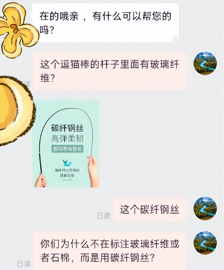 可是没想到,逗猫棒也是玻璃纤维的重灾区!