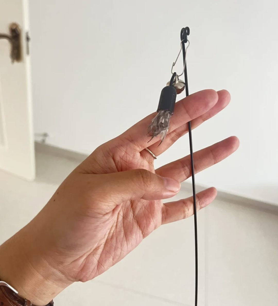 尤其是这种塑料杆子的逗猫棒,如果不小心折断的话,里面就会出现玻璃纤维,不管是扎到猫也好,扎到人也好,都特别危险。