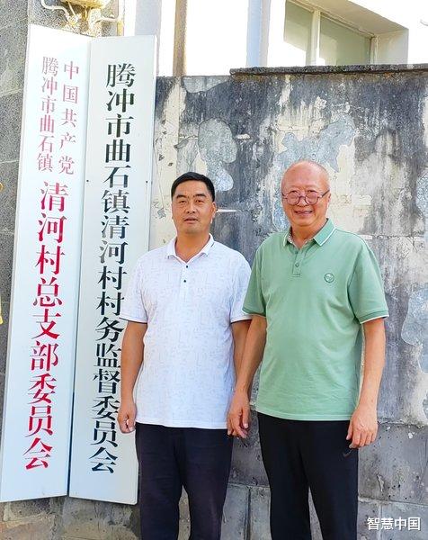 智慧中国大数据中心主任赵一丁与清河村党总支书记封礼瑞(左)于清河村村委会
