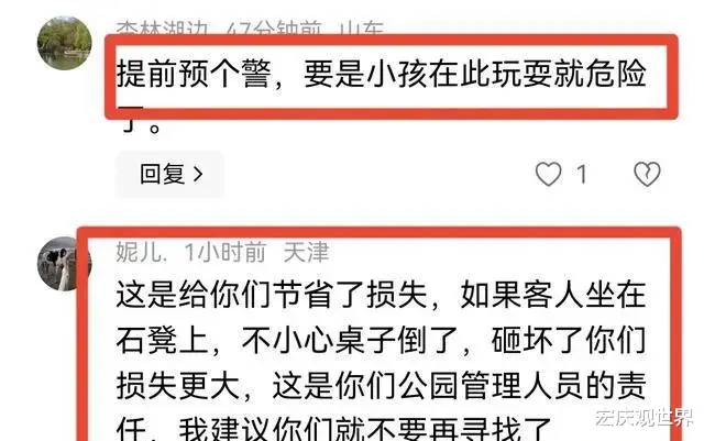 那些支持女子的网友,他们的观点也挺有意思。他们觉得,这石桌的质量肯定不过关。正常情况下,石桌应该是很结实的,能承受一定的重量。可这个石桌居然这么容易就坏了,说明它本身就有问题。他们还说,这女子的行为虽然不妥,但也是给公园提了个醒。要是不早点发现这个问题,以后真有小孩在上面玩耍受伤了,那后果可就严重了。他们觉得不应该惩罚女子,反而应该奖励她,让她意识到自己的行为是错误的,同时也让公园重视起设施的安全问题。