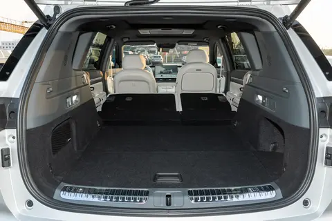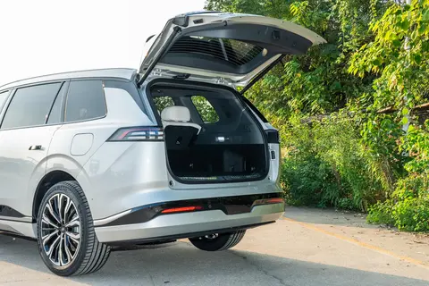 值得一提的是,新车新增了“仙踪绿”与“苍穹灰”两款源自中国国家地理灵感的车色,漆面工艺也进行了升级,旨在让车辆历经岁月洗礼,依然能保持亮丽如新的光泽。侧面视角,全系标配的21英寸轮毂与车身比例相得益彰,隐藏式门把手不仅优化了风阻,也提升了使用的便利性。车尾的贯穿式尾灯与车头遥相呼应,整体造型扎实稳重,给人一种安心可靠的感觉。