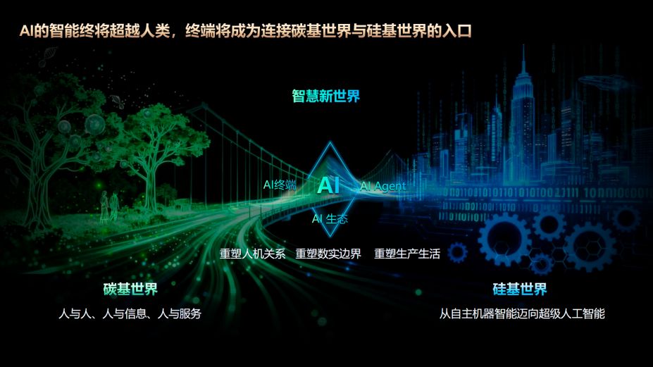 他强调:终端作为数字与物理世界的桥梁,能实时理解用户意图、提供个性化主动服务与可靠隐私保护,是AI服务于人的核心载体,也是人类感官与认知的延伸。AI时代必将成就人与终端的共生关系,终端,也将成为下一代人机交互的核心阵地。
