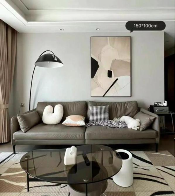 建议:选择一幅单独的大挂画,内容可以是抽象画或现代写意画,既能提升空间的艺术感,又能为客厅增添几分高雅的气息。