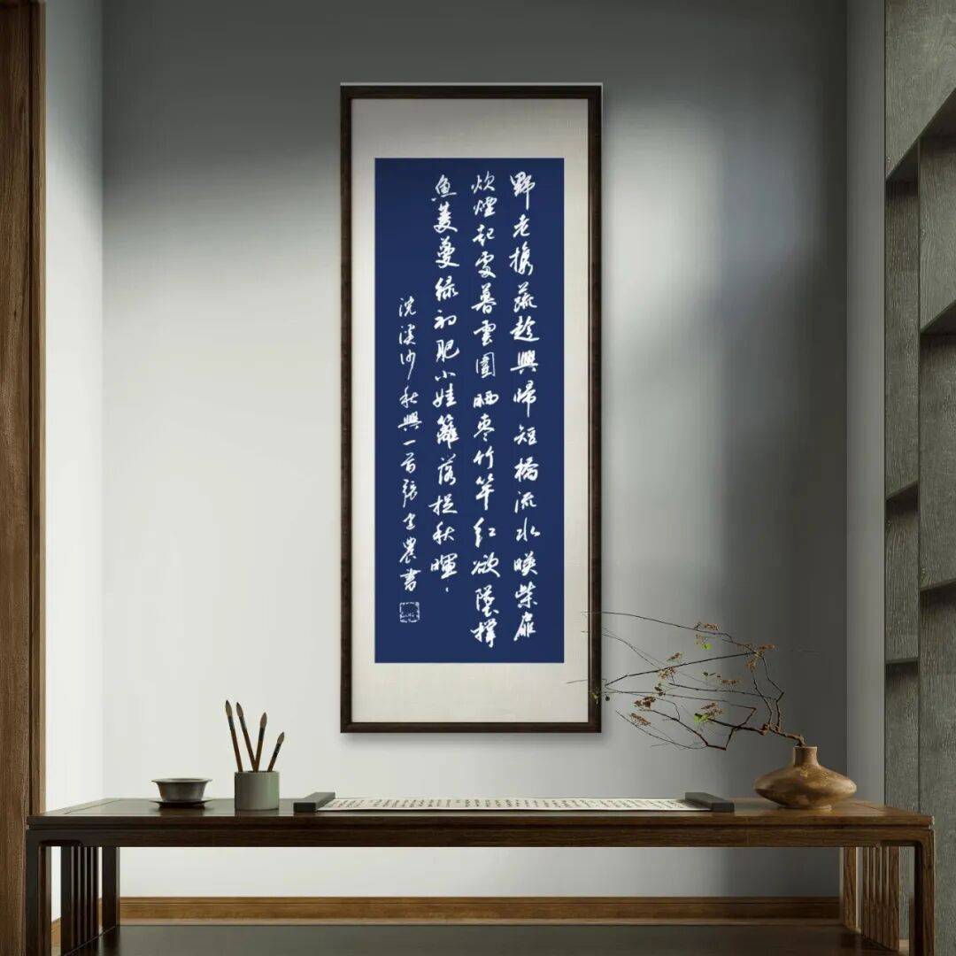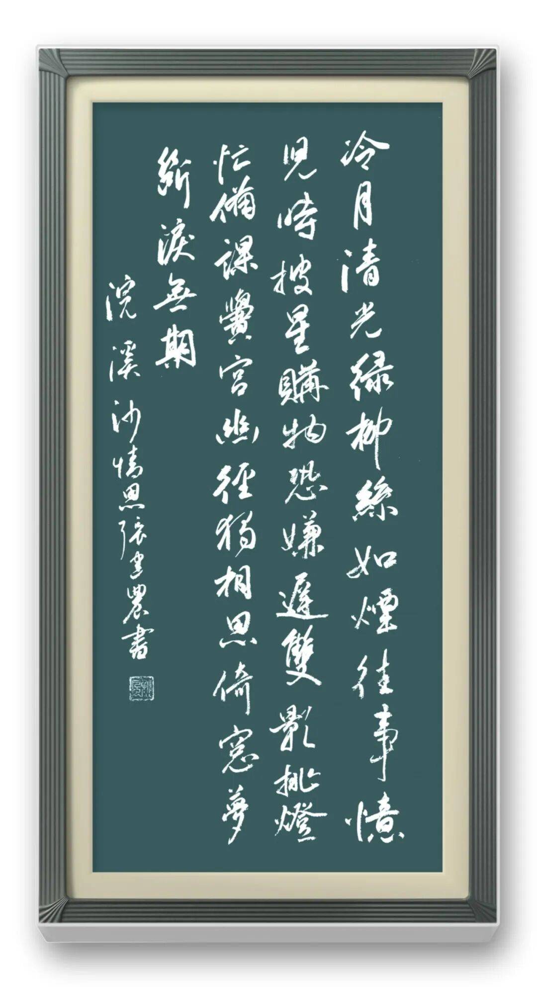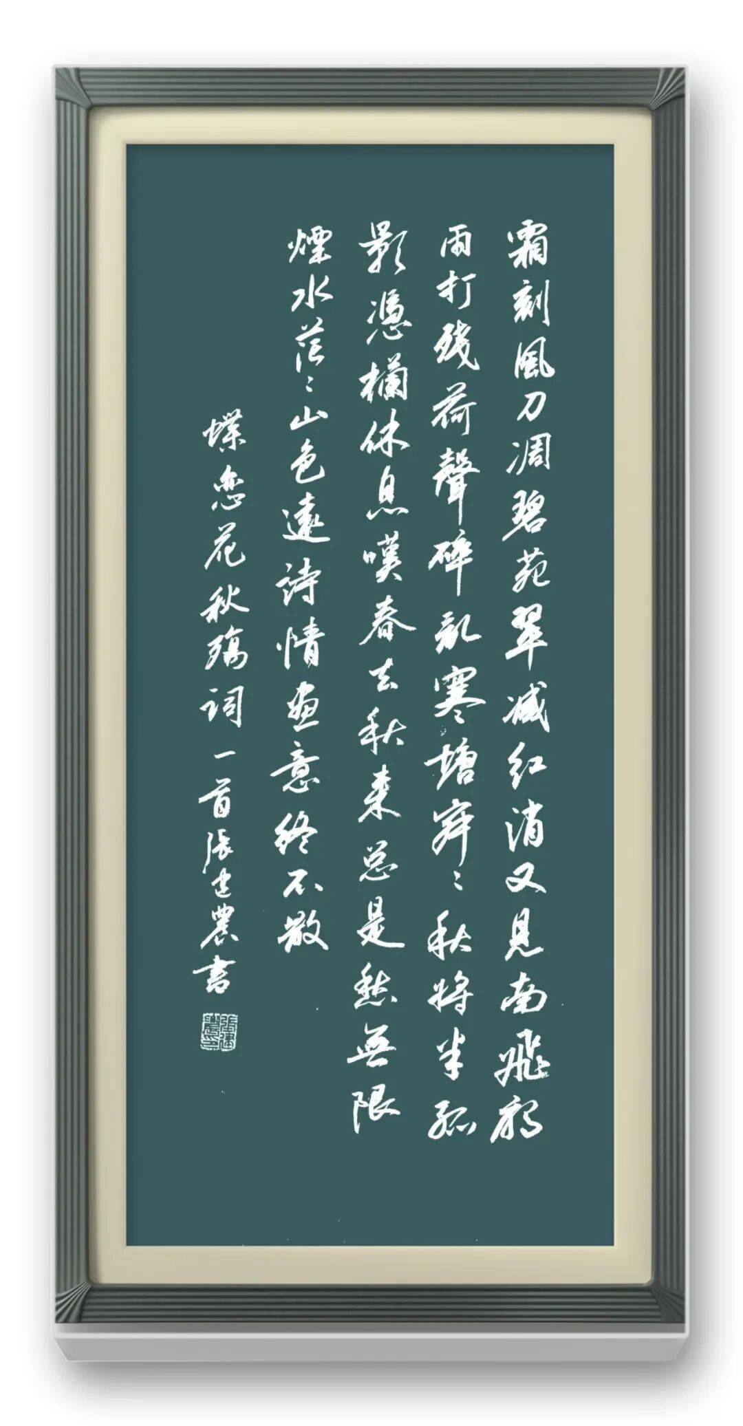 行书是张建农书法艺术的亮点所在,也是他情感表达与个性彰显的最佳载体。他的行书取法二王,兼融苏轼、米芾的意趣,形成了“流畅而不失骨力,飘逸而蕴含沉稳”的艺术风貌。在书法中,其笔墨流转自然,笔势连贯如行云流水,笔画之间的牵丝映带恰到好处,既体现了行书的灵动之美,又保持了字形的独立完整。他的用笔极具节奏感,时而疾如奔马,展现出“大江东去”的豪迈气势;时而缓似漫步,传递出“但愿人长久”的温婉情怀,笔墨的快慢、轻重、浓淡变化,与词文的情感起伏完美契合,达到了“书为心画,文以载道”的和谐统一。