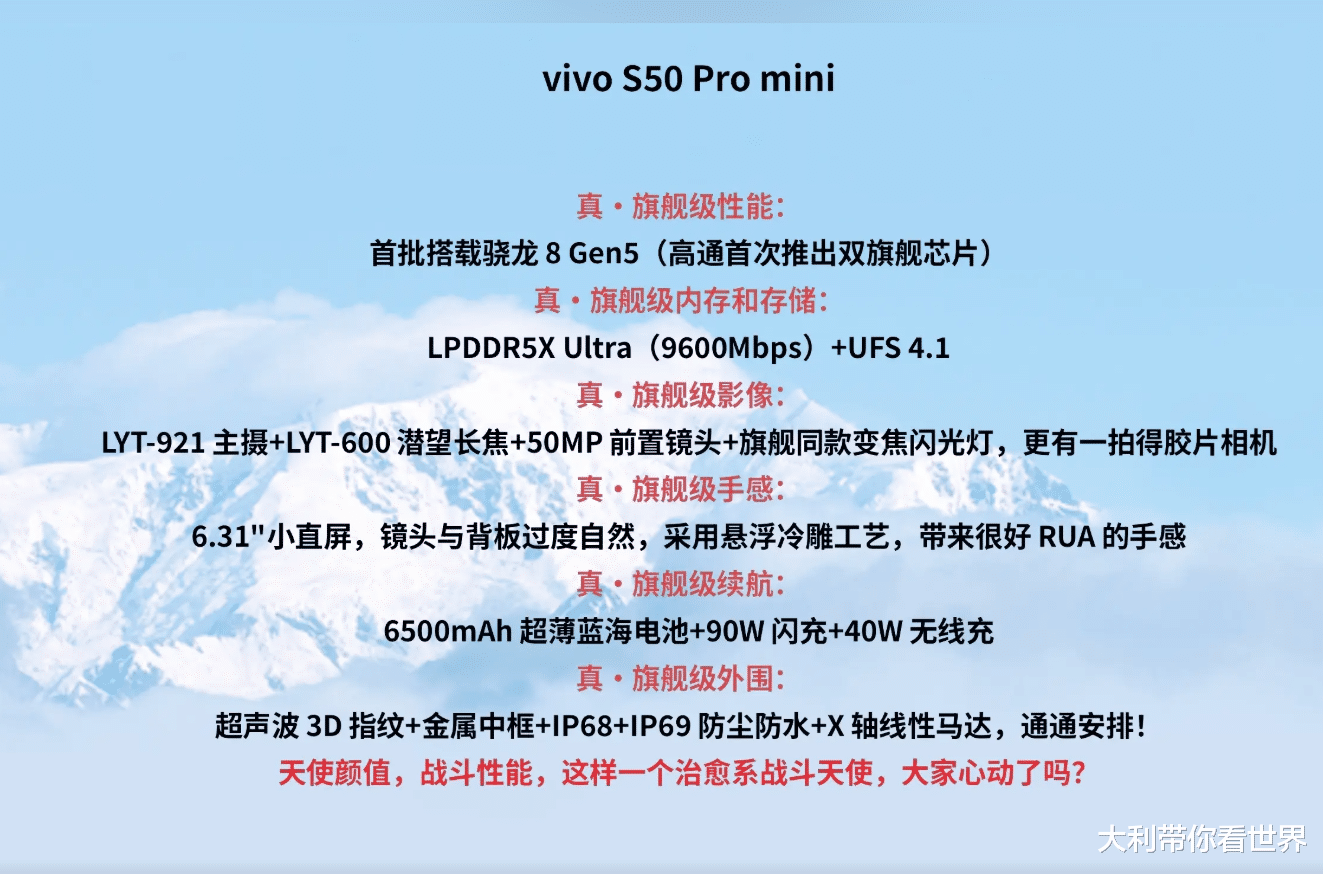 vivo的设计师,们和工程师们显然抓住了小屏手机市场的难点,他们不单单让手机小巧精致,还充分考虑用户对于性能、影像以及续航等多方面的需求,要是你是小屏手机的爱好者,vivo S50 Promini绝对值得去体验一下。