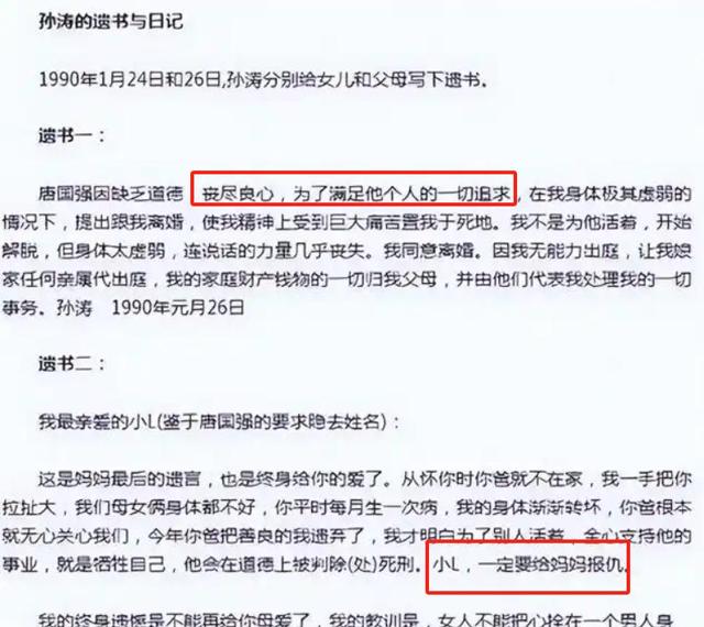 时隔多年,妻子的父母直接公开自己女儿的遗书,控告唐国强逼死发妻,而自己的孩子也直接不认她这个夫妻,认为就是她的父亲害死了自己的母亲。