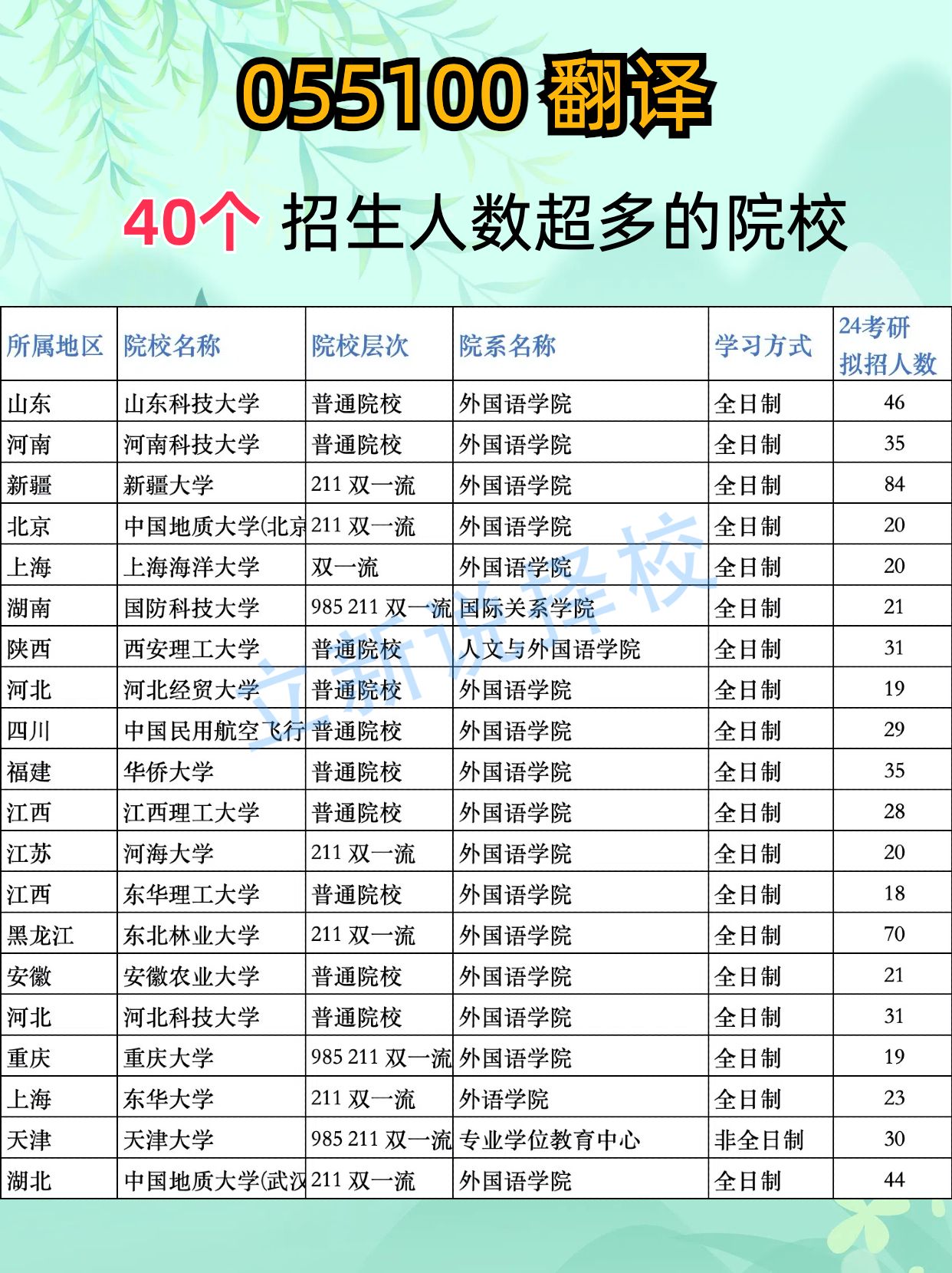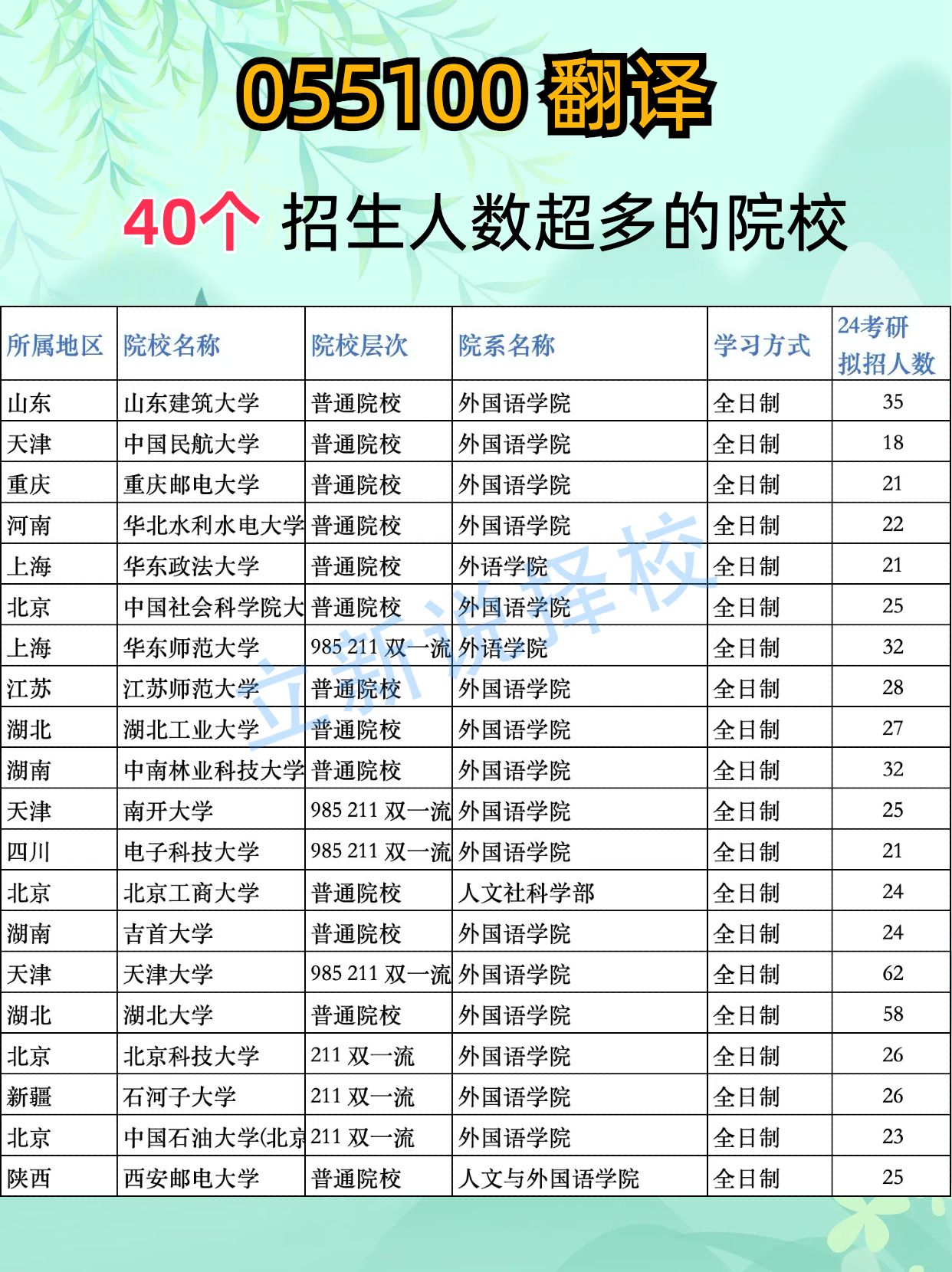 这里更新的是【2024考研】中,【055100 翻译】招生人数超多的院校