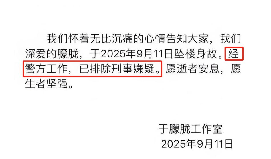 不过,根据于朦胧的工作室发文确认,经警方工作排查,排出刑事嫌疑。