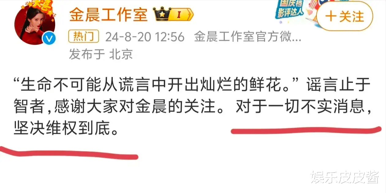 但现在既然被牵扯进来,那也不得不提前做好洗清嫌疑的准备,毕竟到现在为止,金晨就已经被谣言打击的开始辟谣了,不知道下一位又会是谁。