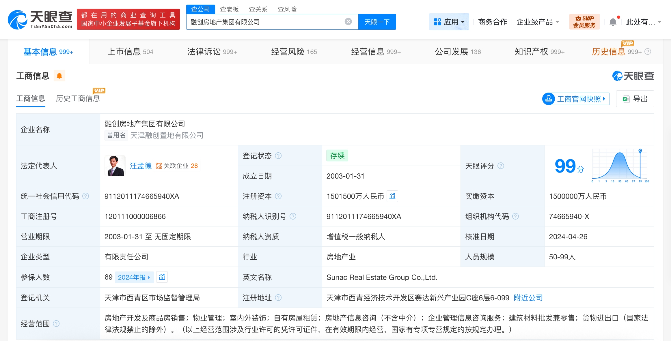 融创房地产集团有限公司成立于2003年1月,法定代表人为汪孟德,由北京融创控股集团有限公司、天津融创嘉晟企业管理咨询有限公司共同持股。天眼风险信息显示,该公司现存220余条被执行人信息,被执行总金额超311亿元,此外,该公司还存在多条限制消费令、失信被执行人(老赖)及终本案件信息。