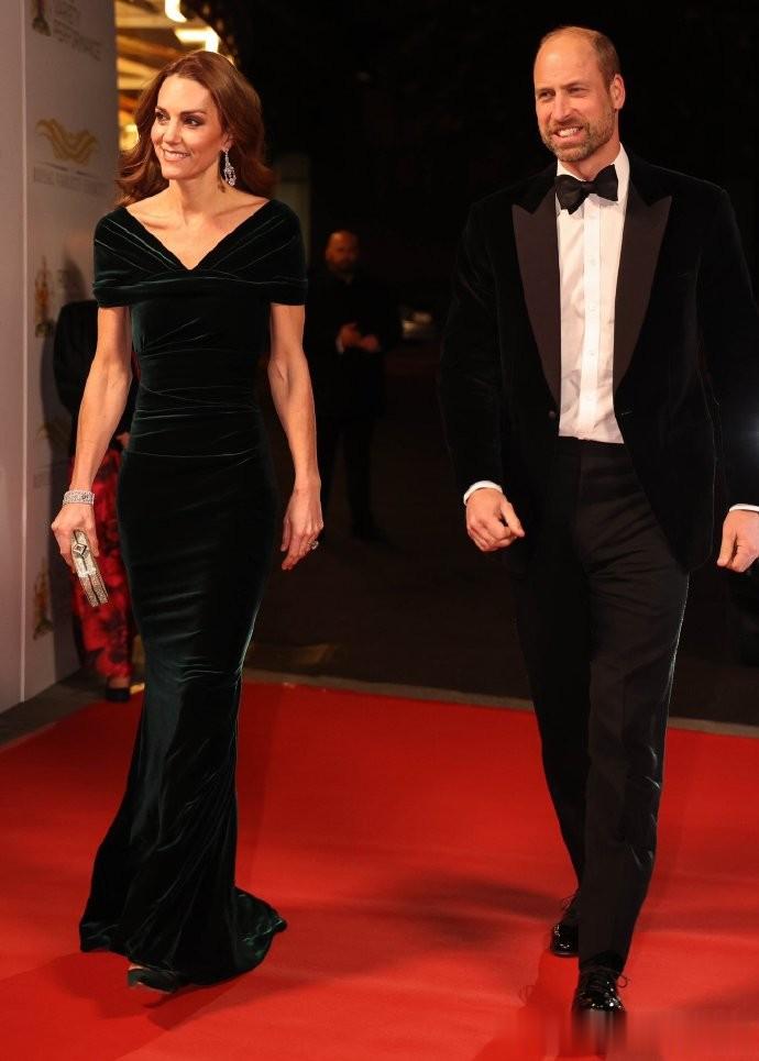 自从凯特王妃恢复正常公务后,每次和丈夫威廉王储出席活动,威廉如今都已经开始大方秀恩爱了。凯特穿金丝绒长裙,威廉这次也搭配了一件黑色金丝绒西装,情侣装既视感。