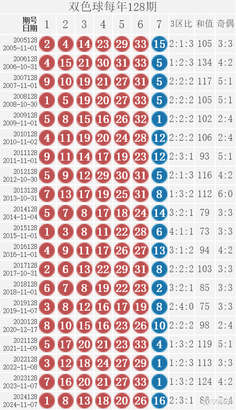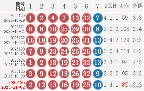 博弈心理,挑战概率: 看近期开奖号码,也可看历史数据统计!【双色球25127期多角度冷热号】双色球25127期四维走势图,红蓝号统计及冷热号1) 历史同一天: 11月04日 (共8期)