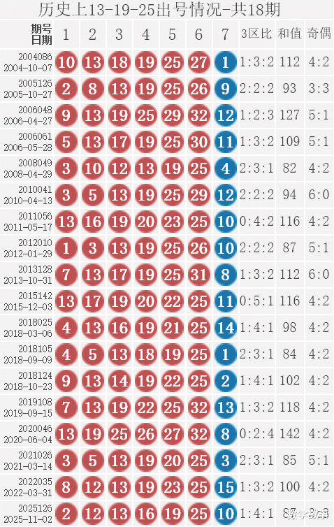 双色球2025126期红号在过去是否出现过?双色球2025126期红号: 2-12-13-16-19-25经查,历史上没有出现过与这一期6个红球或者5个红球号码一样的。与这一期4个红号一样的有21期,如下: