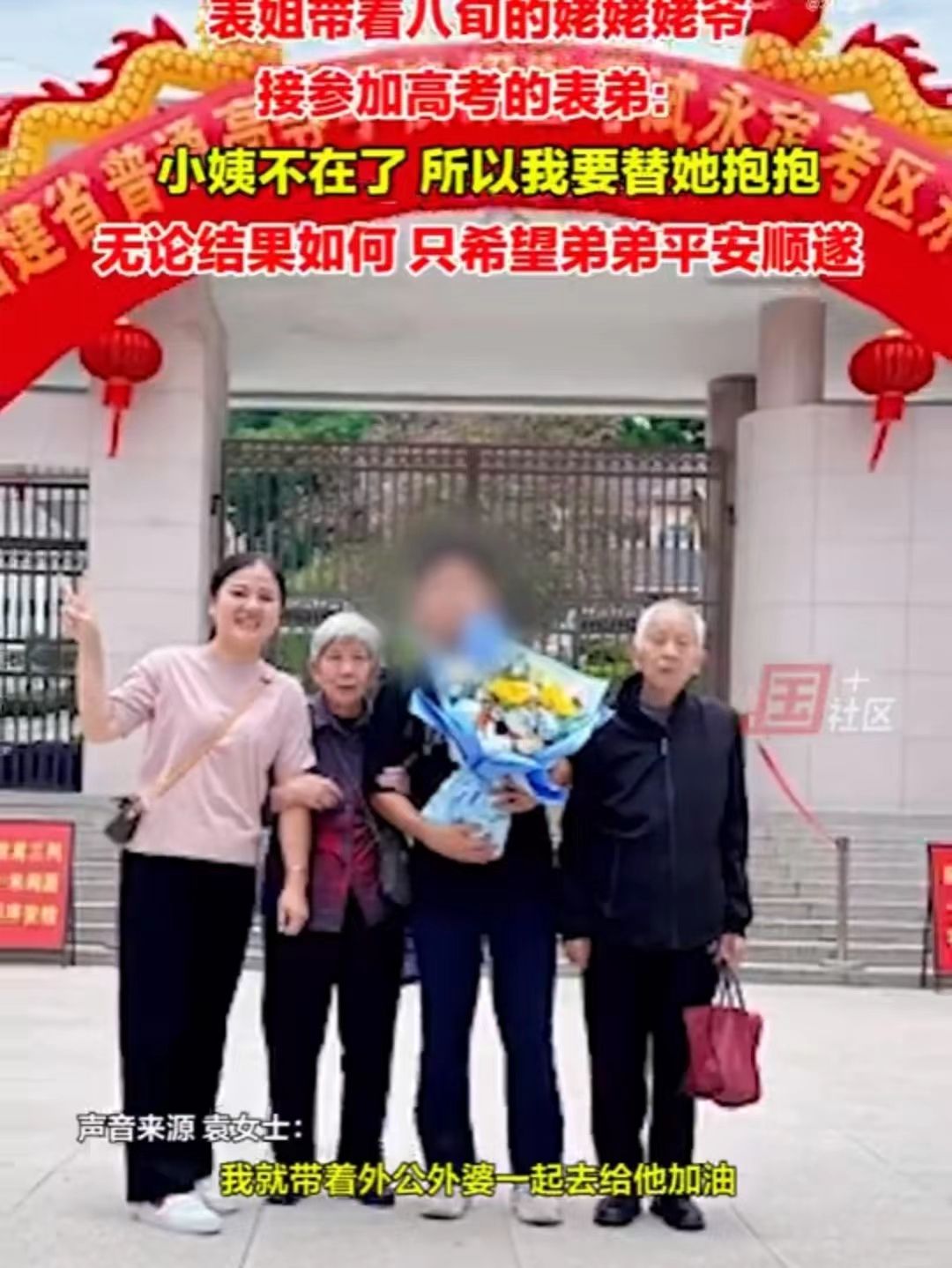 6月7日,福建龙岩的一个普通日子,却发生了一件不平凡的事情。袁女士带着她的八旬姥姥姥爷,特地前往考场,迎接她表弟——今年参加高考的考生。这一举动,不仅是对表弟的鼓励和支持,更是对逝去亲人的深深怀念和缅怀。