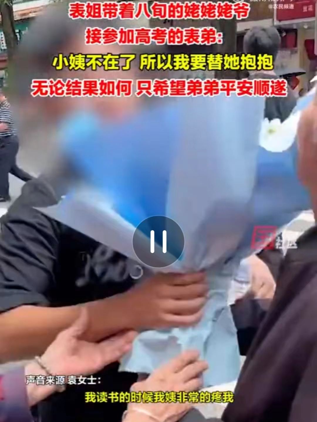 在考场外,袁女士紧紧抱着表弟,仿佛要将所有的祝福和关爱都传递给他。姥姥姥爷也在一旁默默地守护着,他们的眼神中充满了对晚辈的关爱和期待。这个画面,虽然简单,但却充满了温暖和力量。
