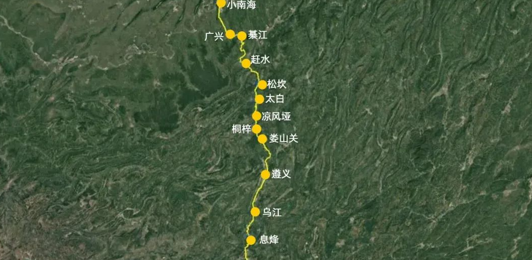 在水系上,川黔铁路大体是按照綦江河域南下的,然后再在桐梓附近进入桐梓河流域,再跨过乌江,然后走乌江支流清水江的上游地带进入贵阳。