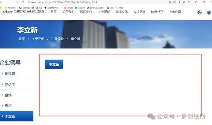目前,在中国航天科技集团官网上刊登的“企业领导”名单中,9个班子成员中并没有李立新,显然,他的信息已从官网撤下。