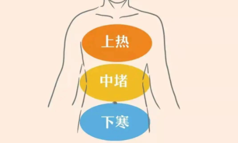 那这种问题呢,多见于上寒下热,中焦不通。什么意思呢,在中医上讲,人体呢上为阳,下为阴,正常情况下,上焦的阳气顺着阳经下降,下焦的阴气呢顺着阴经上济,这样阴阳才能达到平衡,五脏六腑才能正常的运行,那如果你中焦不通,就像吃饭噎着一样,上不来,下不去,那能不难受吗。同样的,要想缓解上寒下热的问题,就要先疏通“管道”,也就是我们的脾胃,清上热,温下寒,双管齐下。