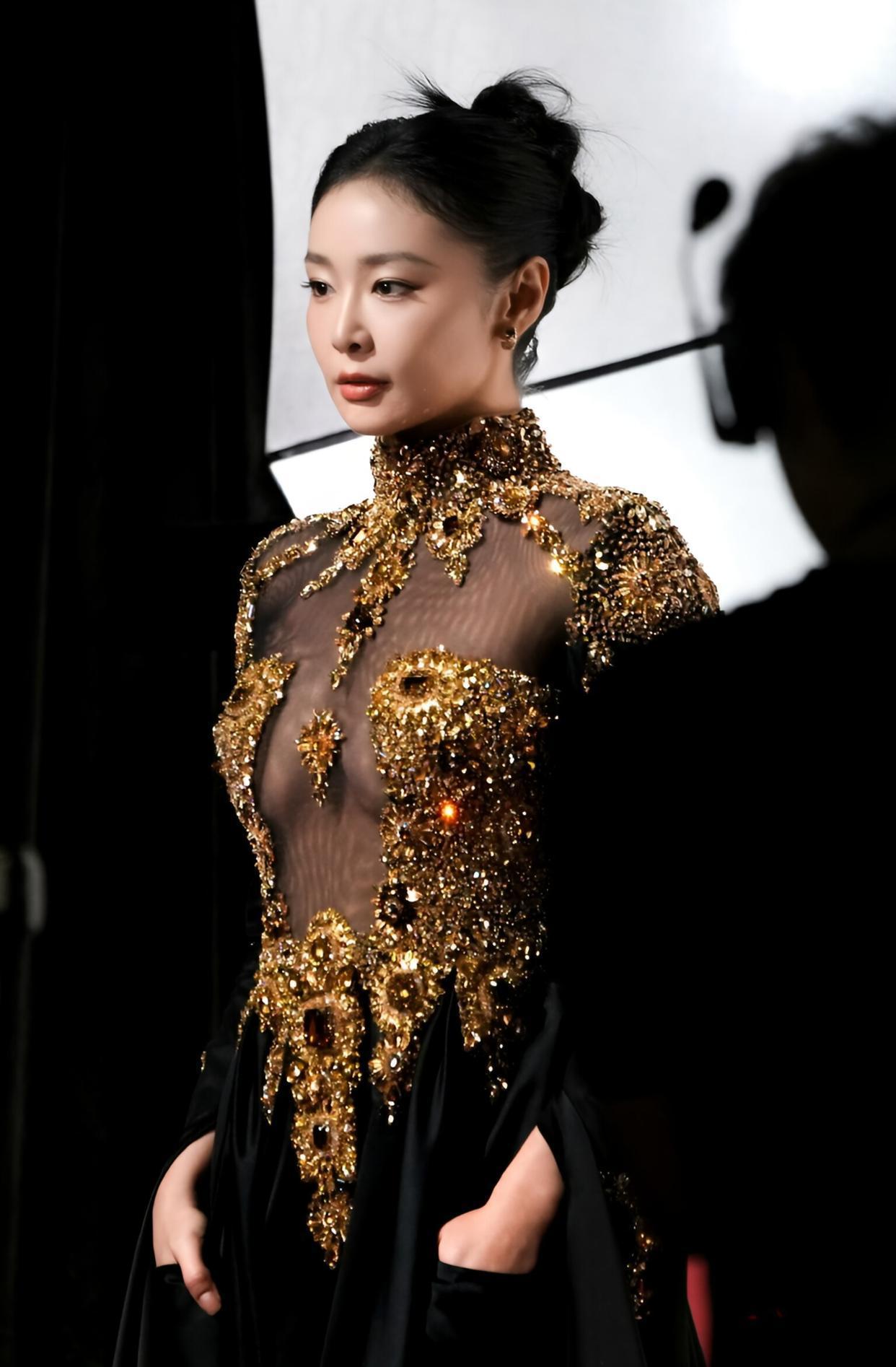 瞧这套阿玛尼,黑色裙装之上,金色刺绣与装饰铺陈得如同奢华画卷。半透明的设计细节,让身材线条若隐若现,性感又带着高级的神秘感。高叶的身材优势本就突出,驾驭这种风格的衣服,简直是相得益彰。