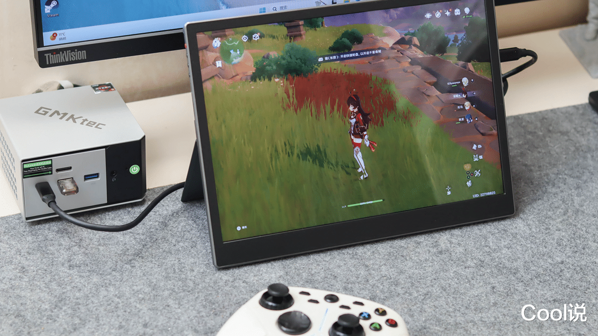 当然,便携屏的方便之处,除了扩展屏幕之外,搭配迷你主机、游戏机也是一大应用场景,距离随时可调、角度可调,感觉玩起来更加的有沉浸感,操作响应及时,画面撕裂感几乎消失。