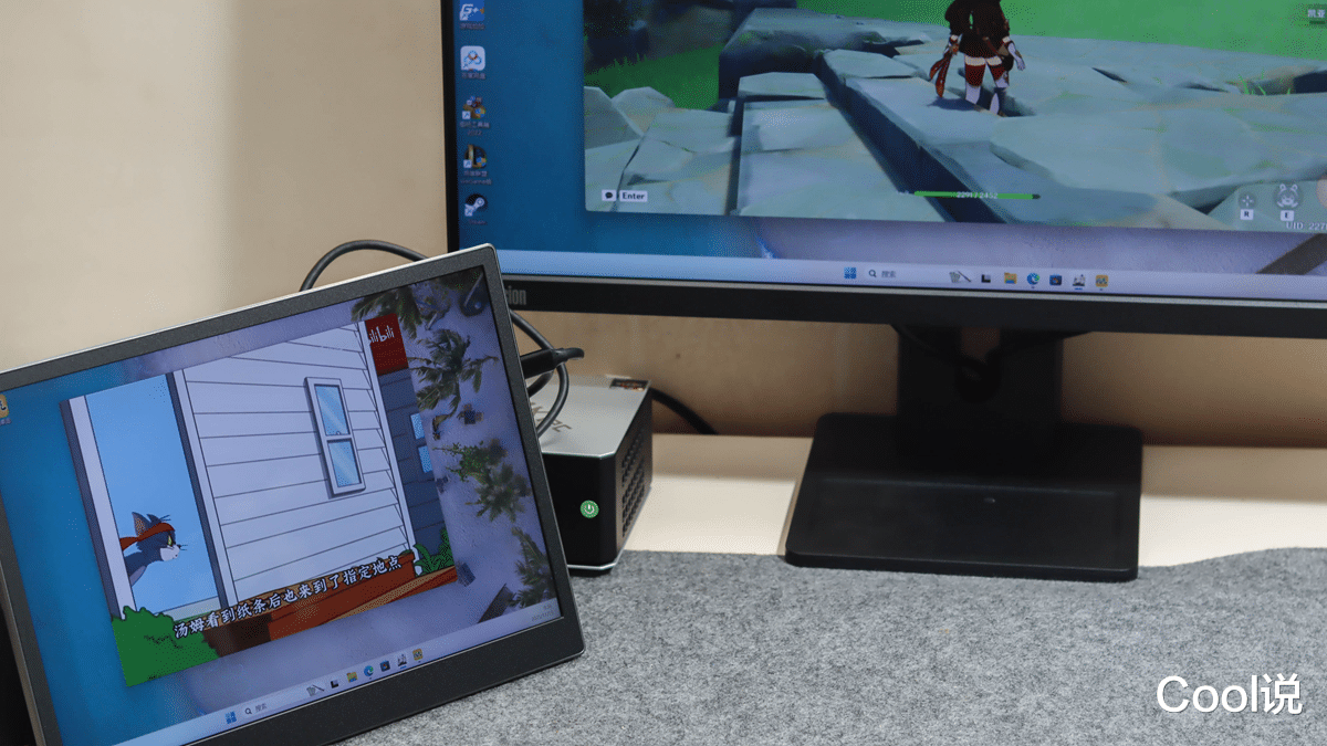尤其是支持一线连,通过C-C就能完成传输和供电,可以说是非常的方便。可以同步显示内容,也可以分屏操作。在需要多任务、多窗口办公时,它的实用性就体现出来了,一边看玩游戏一边看视频,真的非常方便。