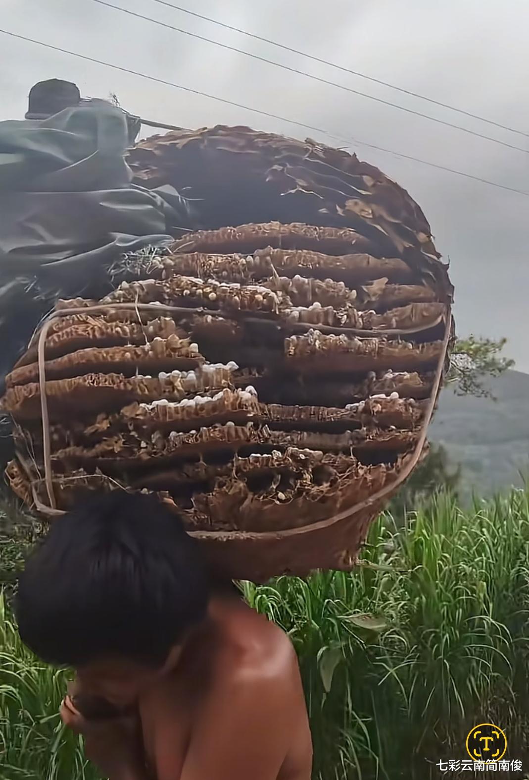 经观察获悉,近日,云南省普洱市墨江哈尼族自治县男子在山间遇见巨型蜂巢。巨型蜂巢呈现圆球状,蜂巢内部层层叠叠,挨挨挤挤,密密集集,满是蜂蛹,蔚然壮观,令人叹为观止,大开眼界。云南省普洱市墨江哈尼族自治县男子能够遇见如此大的蜂巢,真是好运爆棚。相关人士表示,只有云南人才知道这个巨型蜂团的含金量。经了解,油炸蜂蛹是云南省广大地区一道经典野味,备受云南广大地区人民群众、父老乡亲喜爱,其味道醇香,价格高昂,经过油炸后,令人食后难忘,唇齿生香,是云南省广大区域可食用野生昆虫之一。据现场拍摄画面显示,云南省普洱市墨江哈尼族自治县男子赤背徒手,扛着巨型蜂巢回家,画面纯朴,弥漫浓郁乡土气息。云南省相关人士估计,这个巨型蜂团价值2000元至3000元之间,是自己吃?还是拿去卖?这是个值得思考的问题。云南省相关人士指出,可以拿一半去卖,收获外快,留一半食用,满足舌尖味蕾,可谓“一箭双雕,两全其美”。云南省相关人士强调,蜂蛹虽美味,却不是老少皆宜,因为部分人士对高蛋白过敏,需谨慎食用,以免得不偿失,引发病痛。