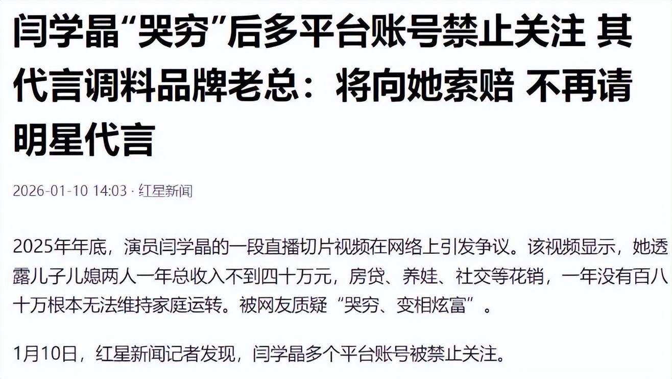 由于这件事情确实是闫学晶所犯下来的错误,所以在解除合作后,她很有可能还面临着巨额的索赔。