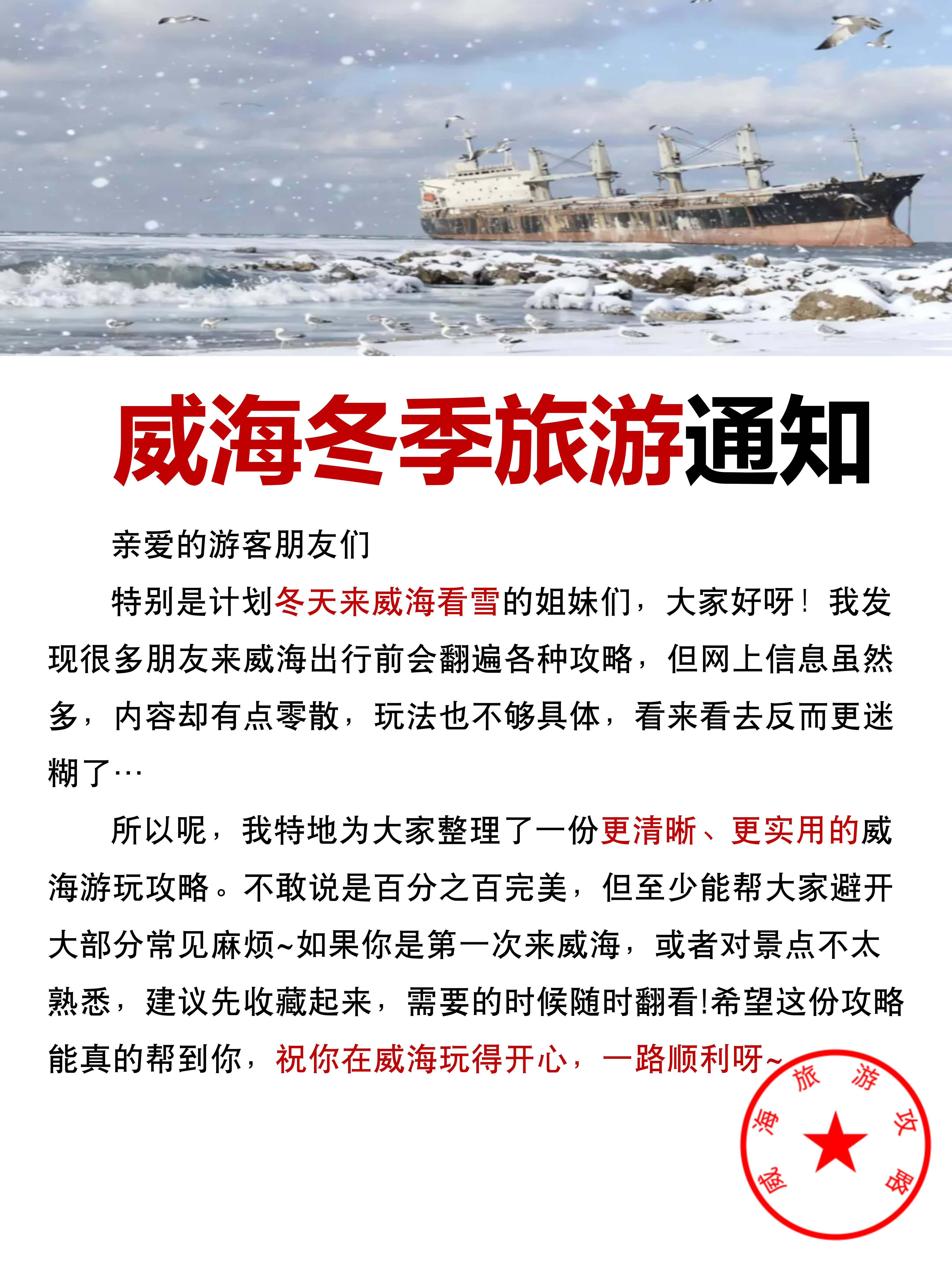 计划冬天来威海看雪❄️的姐妹们,大家好呀!我发现很多朋友来威海出行前会翻遍各种攻略,但网上信息虽然多,内容却有点零散,玩法也不够具体,看来看去反而更迷糊😵💫了,因此我特地为大家整理了一份更清晰、更实用的威海游玩📒攻略,希望能够帮助到你们呦~