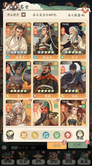 异兽选择:毕方:推荐新手优先培养,能在第四回合造成高额爆发伤害。天眼:提供关键的“锁血”能力,是应对高爆发阵容的必备选择。相柳:提供复活效果,增加容错率。野狼:作为相柳的替代,补充伤害。国策搭配:战法:无中生有、以逸待劳、坚城高驻、与子同袍。谋略:文韬武略 / 运筹帷幄 / 谋定后动、策无遗算。博弈:百战之身。核心原理:通过搭配,控制你的谋略值,确保在第四回合能释放“无中生有”技能,并搭配毕方的技能,形成“毕方+无中”的高额爆发组合,一举消灭敌人。2. 核心名士选择根据上述阵容思路,你可以选择以下强力的名士进行搭配: