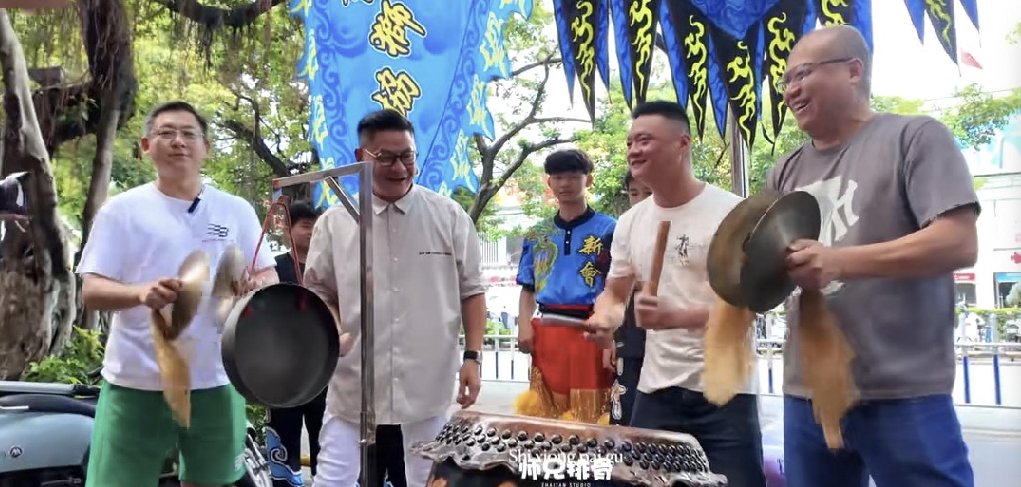 和 TVB 片场里 “演坏人挨骂” 不同,林敬刚这次当起了全场焦点。新店门口摆满贺花篮,他一会儿跟着舞狮队节奏敲锣,一会儿拿起刀和合伙人一起切烧猪,合照时稳稳站在中间位置,笑得眼角皱纹都堆了起来。有熟客喊他 “林老板”,他摆摆手:“还是叫我阿刚更习惯!”