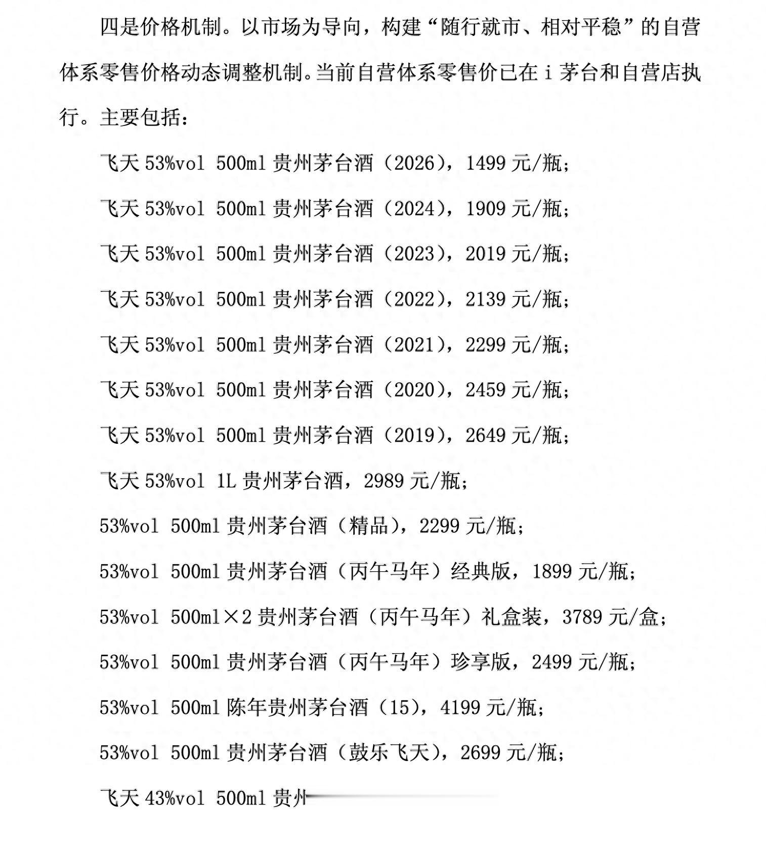 同时,在《2026年贵州茅台酒市场化运营方案》中,不同年份、不同规格的53度飞天茅台,以及精品茅台、生肖茅台、陈酿茅台的价格悉数公开。其中,贵州茅台马年生肖酒已于1月6日在i茅台平台正式开售,经典版定价为1899元/瓶,这一价格比往年生肖酒价格下调不少,如2025年1月推出的蛇年生肖酒市场指导价为2499元/瓶。此外,有市场消息显示,贵州茅台大力度下调了茅台精品、茅台15年两款产品的出厂价和零售价,下调幅度超1000元以上。
