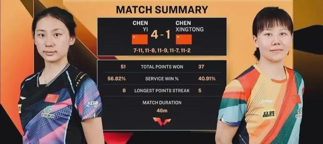 从比赛上看,全程起伏不定,虽说陈熠第一局打得很被动,一度4-8落后陈幸同,终究还7-11丢了首局。但她很快在第二局,再次5-8落后情况下,快速调整线路,一口气连拿下6分,以11-8拿下一分。