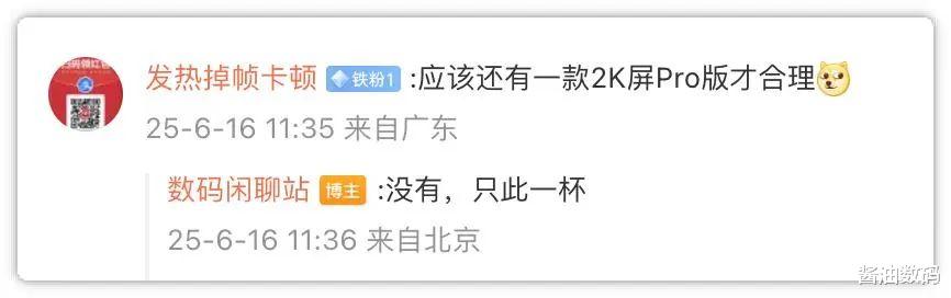 当然站哥这次的爆料也不全是好消息,因为根据爆料来看,一加15将采用6.78英寸1.5K直屏,反观一加12和一加13都是2K屏,虽说1.5K屏幕也够用了,但不管怎么说2K屏还是有其优势所在,如果2K屏是徒增功耗,那为什么OVM的顶级旗舰都是2K屏呢?