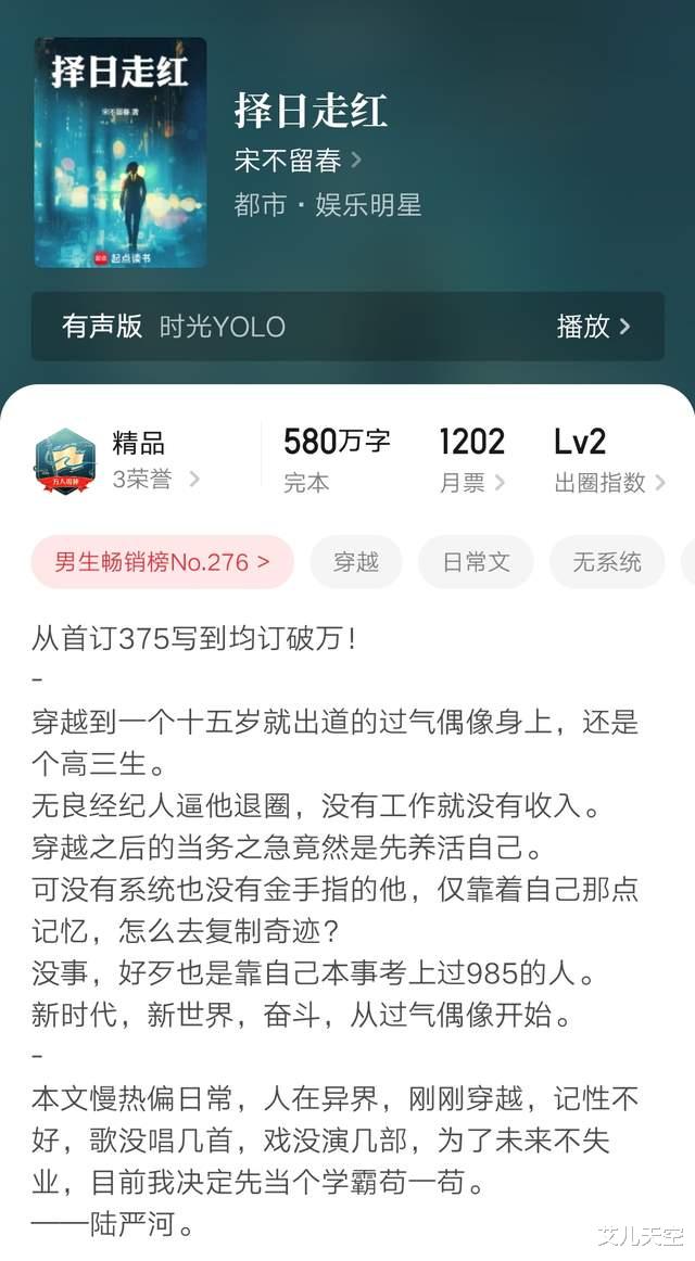 时间走得太快,还是简单更新一下。1、《择日走红》正式完结宋不留春的作品,今天正式完结了。小说在上个月二十号的时候写完了正