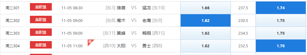 上场雄鹿已经介绍过了,猛龙跟雄鹿两支球队大分出的概率都比较多,近期两队都开始走小分这个路数猛龙已经连续两场小分,本场继续看好两队总分不超过238分。