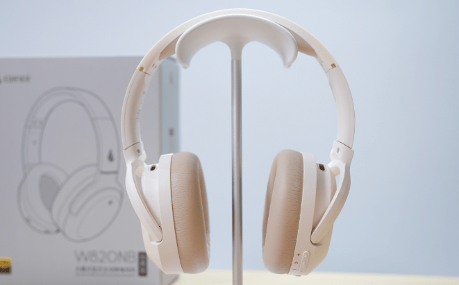 这款耳机音质走均衡路线,内置42mm动圈单元超给力!高频听着特别柔和,完全不会刺耳;低频也很有弹性,不管是流行歌的鼓点,还是古典乐的氛围感,都能轻松hold住。美中不足的是中频密度差了点,播放主打人声的抒情歌时,少了点戳中人心的情感张力,氛围感就差那么一丢丢。
