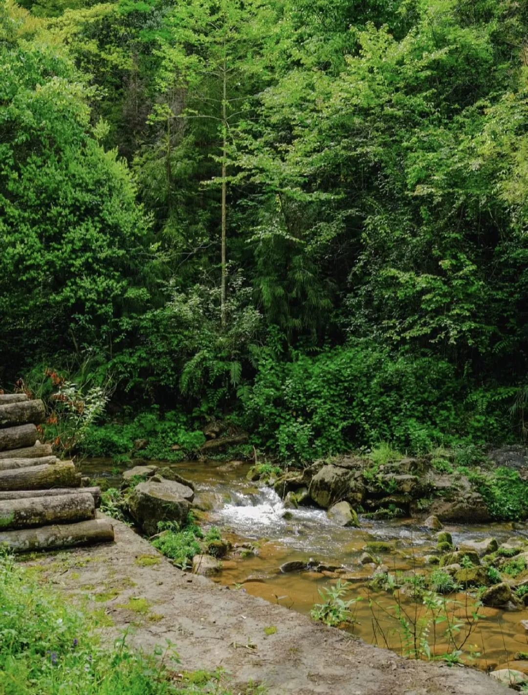 村子周边的溪谷非常漂亮,四周是层层叠叠的苍翠青山,还有一条清澈的溪流穿村而过,如今,这里还新建了牧场,有咖啡厅和手工作坊……有点“误入阿勒泰”的即视感,简直就是宝藏山村!这次真的来对了。